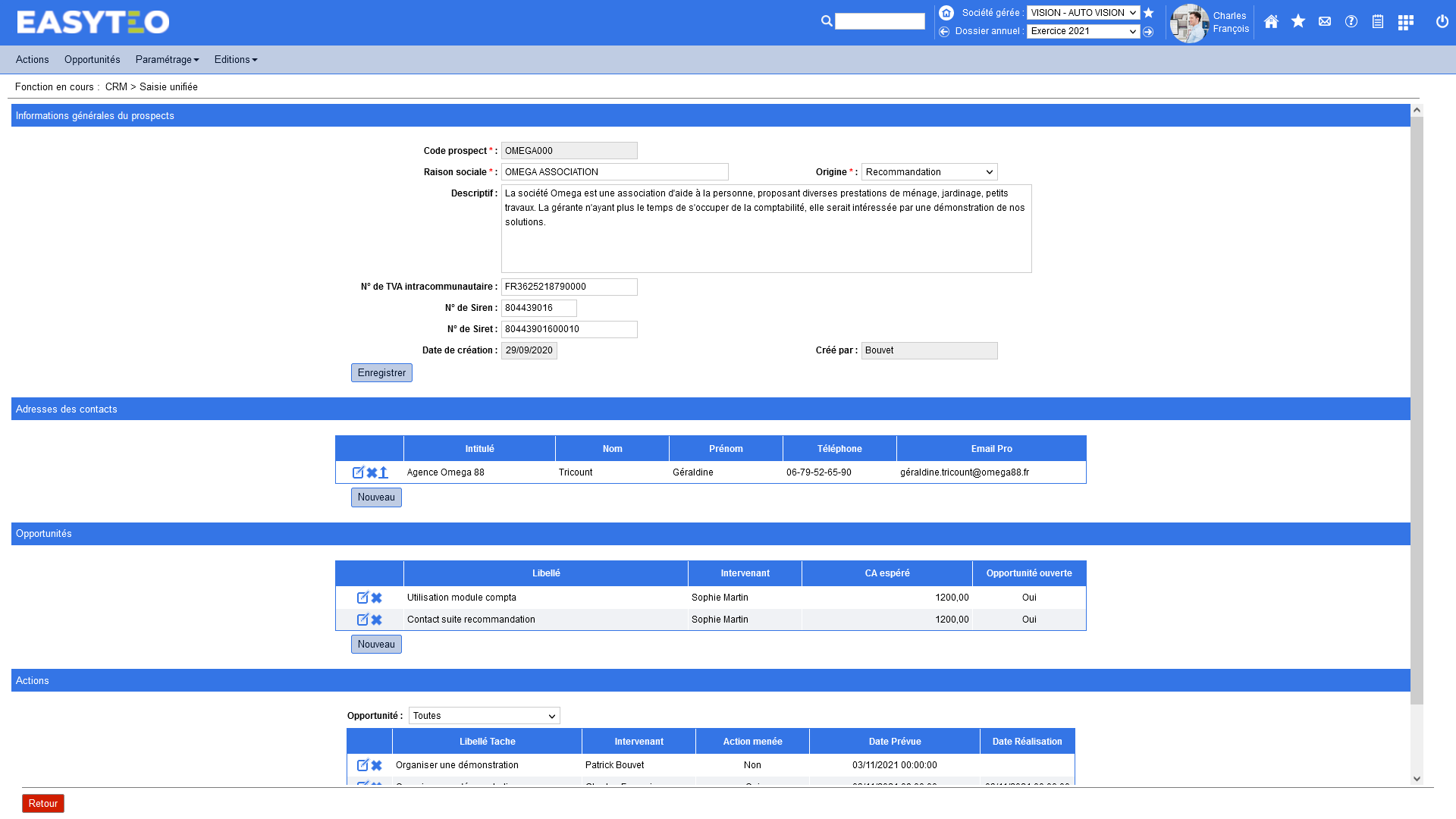Easyteo CRM permet de gérer des opportunités commerciales et les actions qui y sont associées.