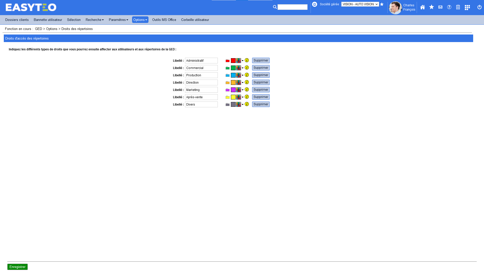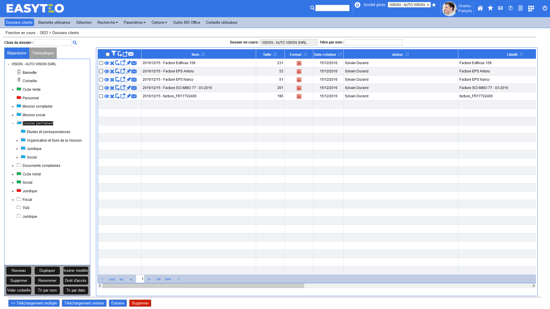 - Déplacements rapides des documents « drag and drop » entre les répertoires Paramétrage des codes couleurs des répertoires en fonction des droits d'accès Modèles de classements personnalisables (arborescences types) Indexation des documents pour une recherche ultrarapide : par thème, par mot-clef, par mission et type de mission Interface directe avec les outils de production Enregistrement instantané dans la GED depuis tous les logiciels de la suite Office® Intégration automatique des e-mails et des pièces jointes Droits de visualisation personnalisables par utilisateur
