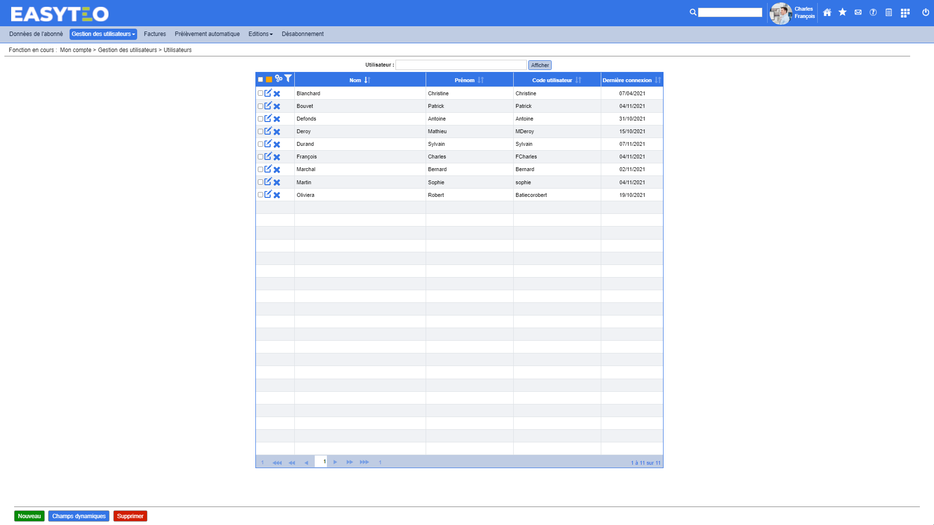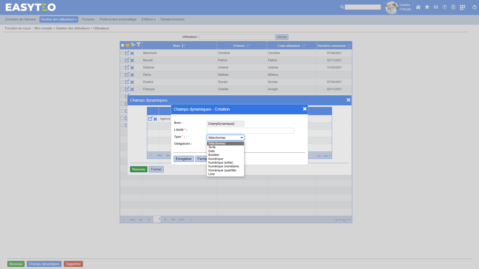 - Définition très fine des droits d'accès Nombreuses éditions de suivi de l'utilisation de l'application Autonomie du dimensionnement des abonnements Champs dynamiques personnalisables dans le fichier utilisateurs Ce module n'est pas facturé par Easyteo