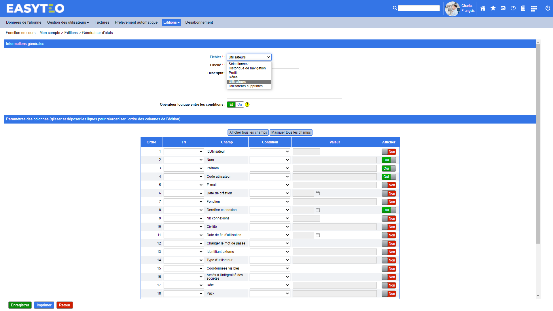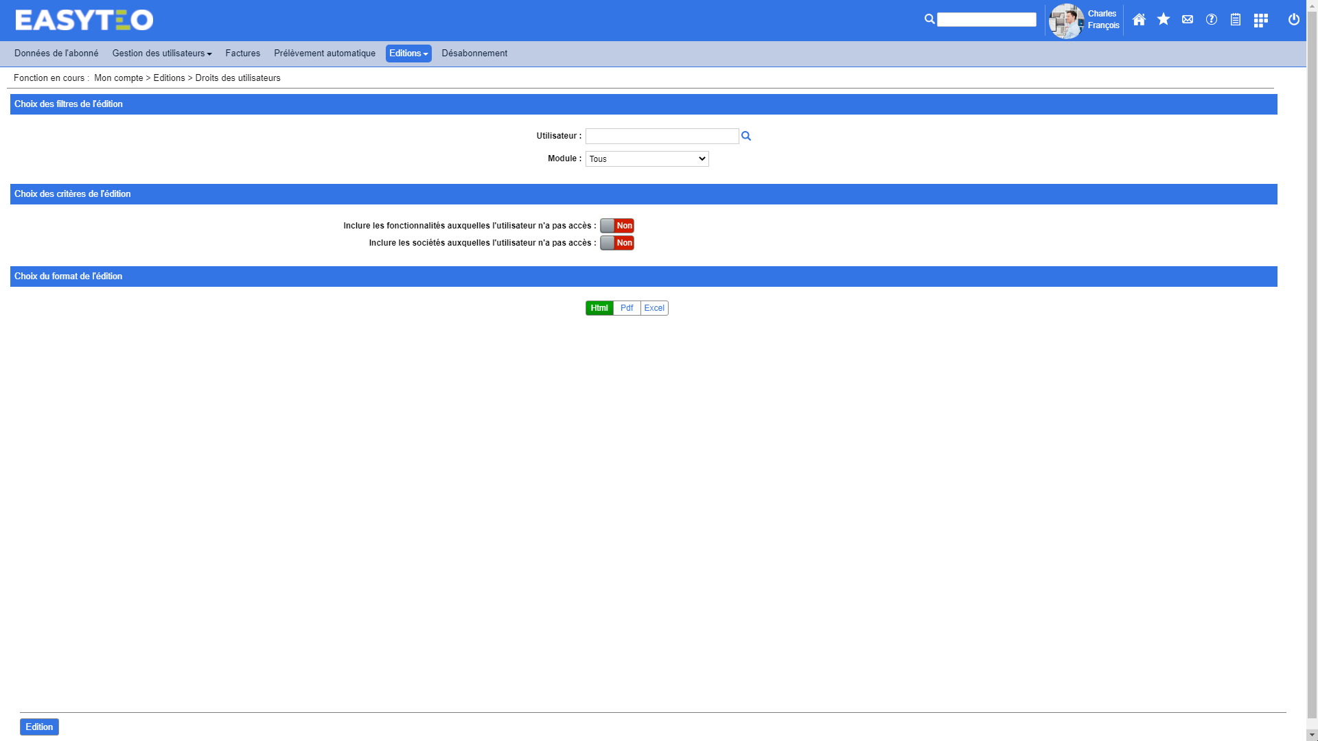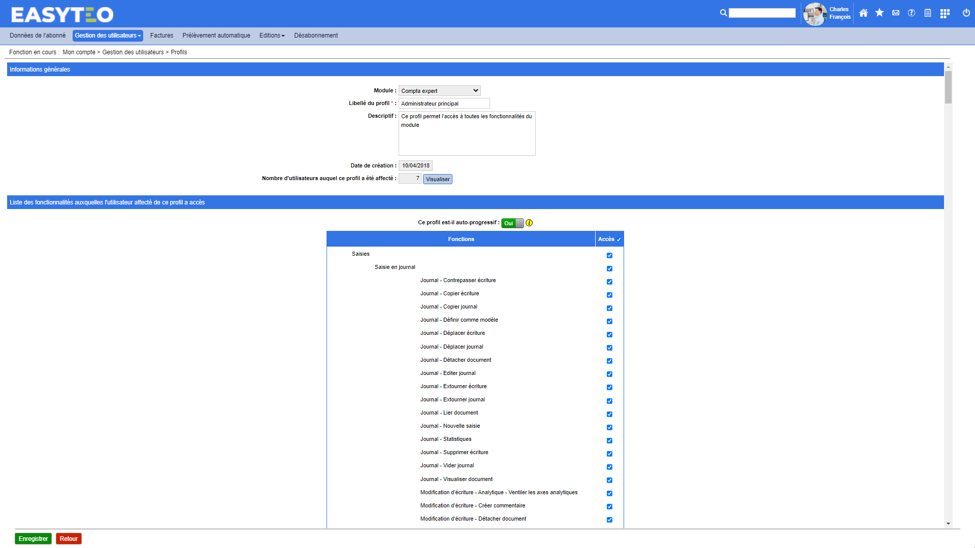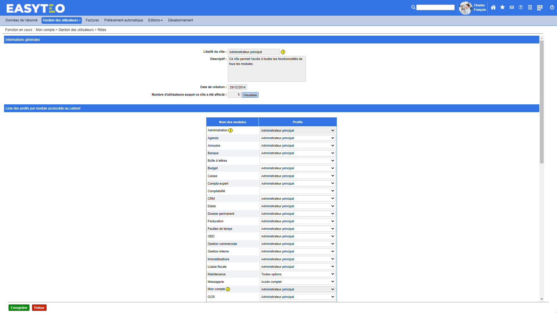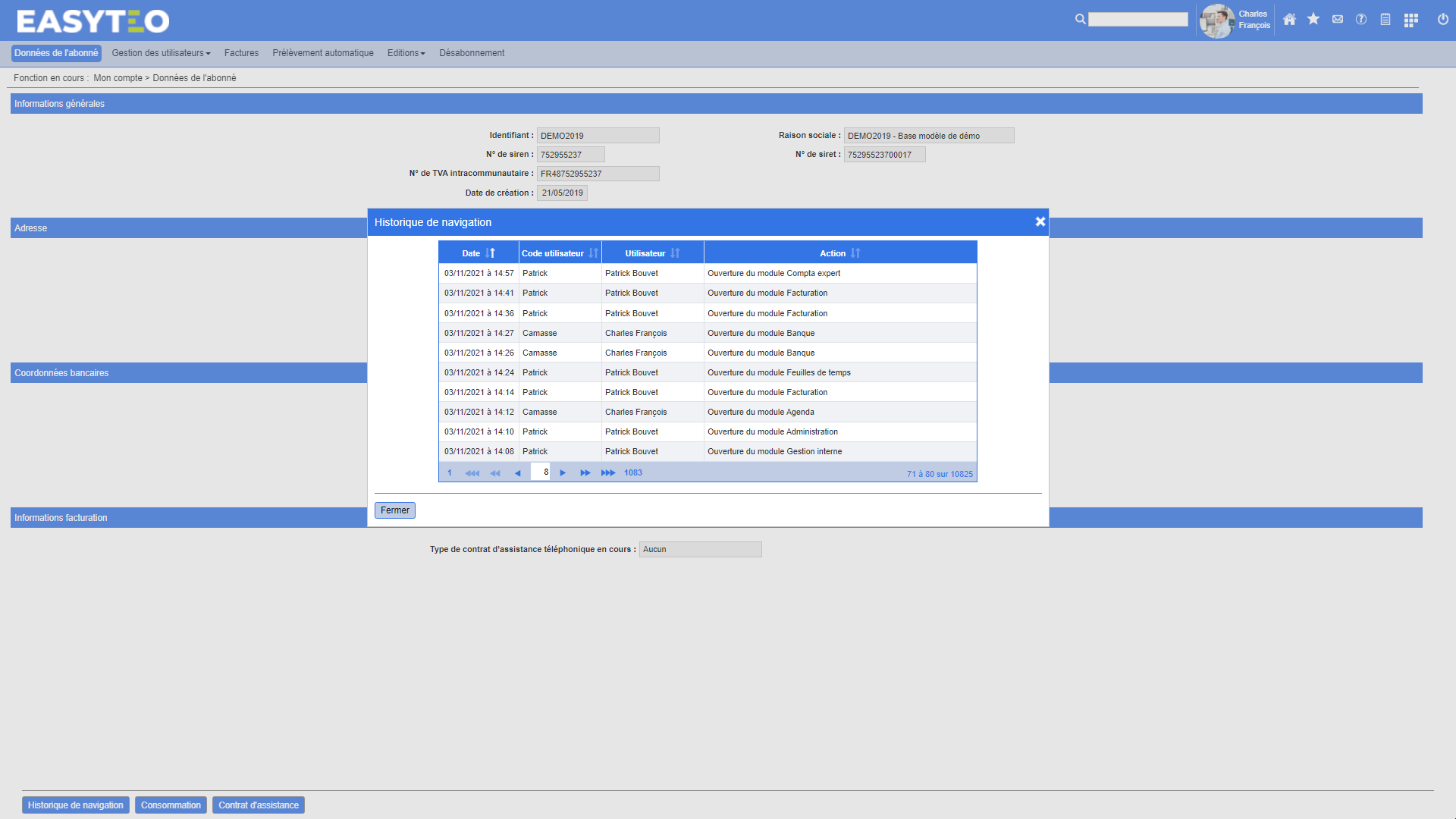 L'ouverture d'un accès à un module pour un utilisateur entrainant une facturation de la part d'Easyteo, il est essentiel que ce paramétrage puisse être visualisé et modifié à tout moment et de manière très précise.